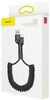 Kabeln låter dig ladda och överföra filer mellan USB-enheter och Apple-enheter utrustade med en Lightning-ingång. Kabeln är gjord i spiralformat, så den trasslar inte ihop sig eller tar mycket plats. Kabeln sträcker sig till en längd av 1 meter, så att du bekvämt kan använda den anslutna enheten på vilket avstånd som helst.