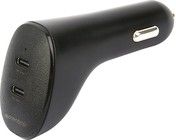 Smidigt billaddare med två USB-uttag som gör att du kan ladda exempelvis en laptop och en iPhone samtidigt.