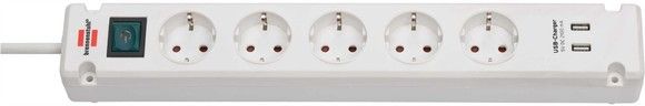 Grendosa med 5st 230V-uttag, 2 USB-A-uttag och 4-punktsfäste för montering på vägg. Uttagen sitter i 90°-vinkel och har extra brett avstånd mellan varandra, vilket är idealisk för vinklade stickproppar och spänningsomvandlare.