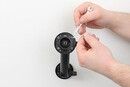 3. Placera hållaren över monteringsplattan så att skruven passar i hålet i kulleden och skruva fast den. Dra åt skruven så att hållaren sitter stadigt på plats men ändå kan vinklas.