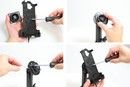 1. Lossa på skruven mitt i hållaren så att du kan ta bort monteringsplattan på baksidan. Placera monteringsplattan på önskad plats. Skruva fast monteringsplattan med de medsända skruvarna. Placera hållaren över monteringsplattan så att skruven passar i hålet i kulleden. Dra åt skruven tills hållaren sitter stadigt på plats men ändå kan vinklas.