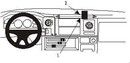 2. Pressa in hållarens tejpförsedda nederdel i springan vid 1 mellan instrumentbrädan och panelen som omger stereon.