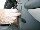 1. Pressa in den medsända springöppnaren i springan i mittkonsolens sidovägg för att vidga springan. Avlägsna skyddsplasten på den dubbelhäftande tejpen på ProClip-hållaren.
