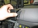 2. Pressa in fästets vinklade nederdel i springan på undersidan mellan ramen som omger luftgallret och instrumentbrädan.