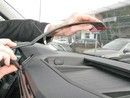 1. Pressa in den medsända springöppnaren i springan mellan ramen som omger mittkonsollens panel och instrumentbrädan, för att vidga springan. Använd den medsända våtservetten till att rengöra området där ProClip-fästet ska monteras. Avlägsna skyddsplasten på de dubbelhäftande tejpremsorna på ProClip-fästet. Pressa in fästets vinklade nederdel i springan bredvid springöppnaren.