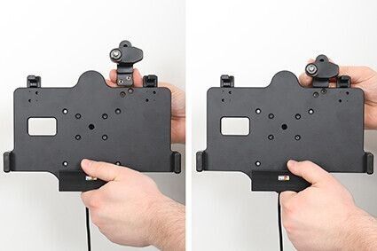 3. För att låsa: Skjut låsningsdelen i sidled och tryck på knappen. Lås upp låset Skjut låsningsdelen i sidled.