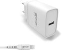 Liten och smidig laddare med en USB-A-port och 1 meter lång Lightning-kabel.