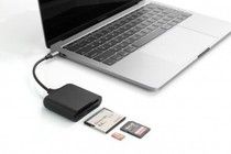 Multikortläsare för att läsa och skriva alla vanliga typer och kapaciteter på minneskortet. Ansluts via USB-A.