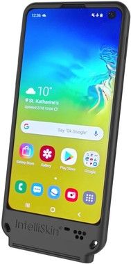IntelliSkin är en skyddsfodral med GDS-teknik med fallskydd av militär kvalitet för Samsung Galaxy S10e. IntelliSkin-hylsens integrerade GDS-kontakt är gjuten direkt in i huden, vilket förhindrar skador på enhetens laddningsport från upprepad dockning. Gjutna robusta dockningskontakter på utsidan av huden är också designade för upprepad dockning i fälttillämpningar. Den här versionen av IntelliSkin låter dig aktivera Samsung DeX-läge med GDS Hub och är kompatibel med en mängd olika USB Type-C GDS-dockor och tillbehör som möjliggör laddning och datasynkronisering.
