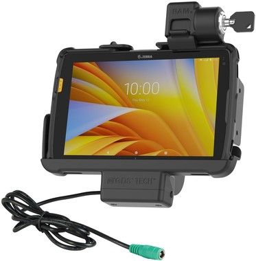 Med laddningsmöjligheter och ett nyckellås för stöldavskräckning, RAM Tough-Dock för Zebra ET40 & ET45 8" företagssurfplattor med Rugged Frame låter dig hålla enheten laddad genom pogo-stiftkontakterna när enheten är dockad - ström tillhandahålls genom att ansluta till dockans 5,5 mm likströmsuttag. Dockan låter även surfplattans skanningsfunktion fungera på sidan, liksom surfplattetillägg som Zebra Expansion Back och PowerPack Battery. Denna fordonsdocka är kompatibel med C och D storlek RAM 4-håls AMPS och 75 mm x 75 mm VESA mönsterbaser för att fästa en dubbel sockelarm för att komplettera din monteringslösning. Ta lösningen ett steg längre genom att dra fördel av den inbyggda 2-håls monteringsplattan kompatibel med RAM 2-håls diamantbas för montering av ytterligare enhet såsom en telefon eller annan handhållen enhet.