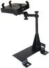 Detta No-Drill Laptop Stand System installeras snabbt och enkelt i de specificerade fordonen med hjälp av den befintliga hårdvaran på passagerarsidans sätesskenor. Denna konfiguration ger en teleskopfunktion som sträcker sig från 12 till 18 tum. Dubbla svängarmar ger artikulation och 12 tums räckvidd för passagerare och förare åtkomst till den monterade enheten. Patenterad gummikula och hylsa ger ytterligare justering samt stöt- och vibrationsisolering. RAM Tough-Tray är fjäderbelastad för att rymma 10" till 16" breda bärbara datorer (17" breda skärmar). Brickan har fyra justerbara fästarmar med gummigrepp. Dessa armar kan flyttas både vertikalt och horisontellt. Detta möjliggör en anpassad passform för olika tjocklekar av bärbara datorer och friheten att inte blockera portar eller enheter. Ett skärmstöd och USB-lampa finns också tillgängliga för att tillbehöra brickan. Hålmönster på omkretsen av brickan underlättar monteringen av ytterligare RAM-system för att stödja GPS eller annan elektronik .